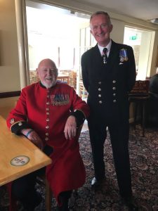 Taking the salute with Chelsea Pensioner Brian Cummings