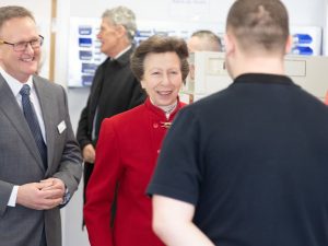 HRH Princess Royal is greeted by HM Lord-Lieutenant of Devon, David Fursdon and escorted to Valeport on the Anniversary of 50 years of tradin