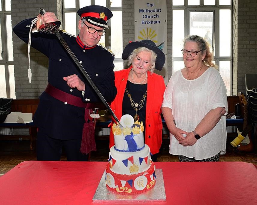 For the Coronation celebrations on 8th May, Deputy Lieutenant Nick Powe was invited to Brixham’s ‘Parade Service’, where he had the duty and honour to cut their Coronation cake.