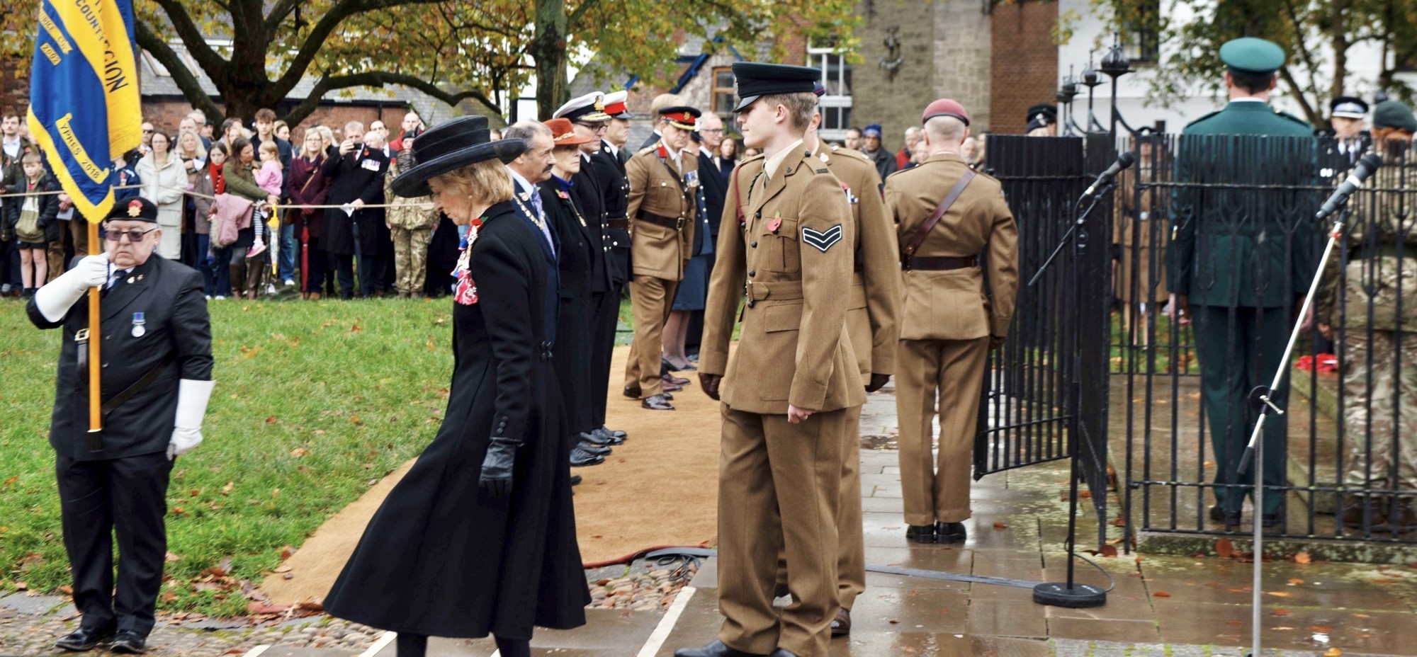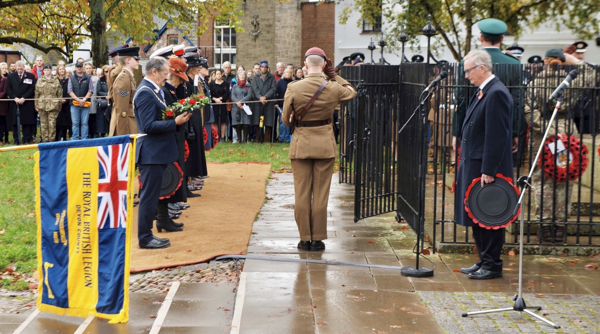 There, she lay a wreath on behalf of the Devon Lieutenancy to commemorate Remembrance. In attendance was Chair of Devon County Council, Councillor Percy Prowse, who also lay a wreath. This was followed by a Remembrance Service held in the Cathedral.