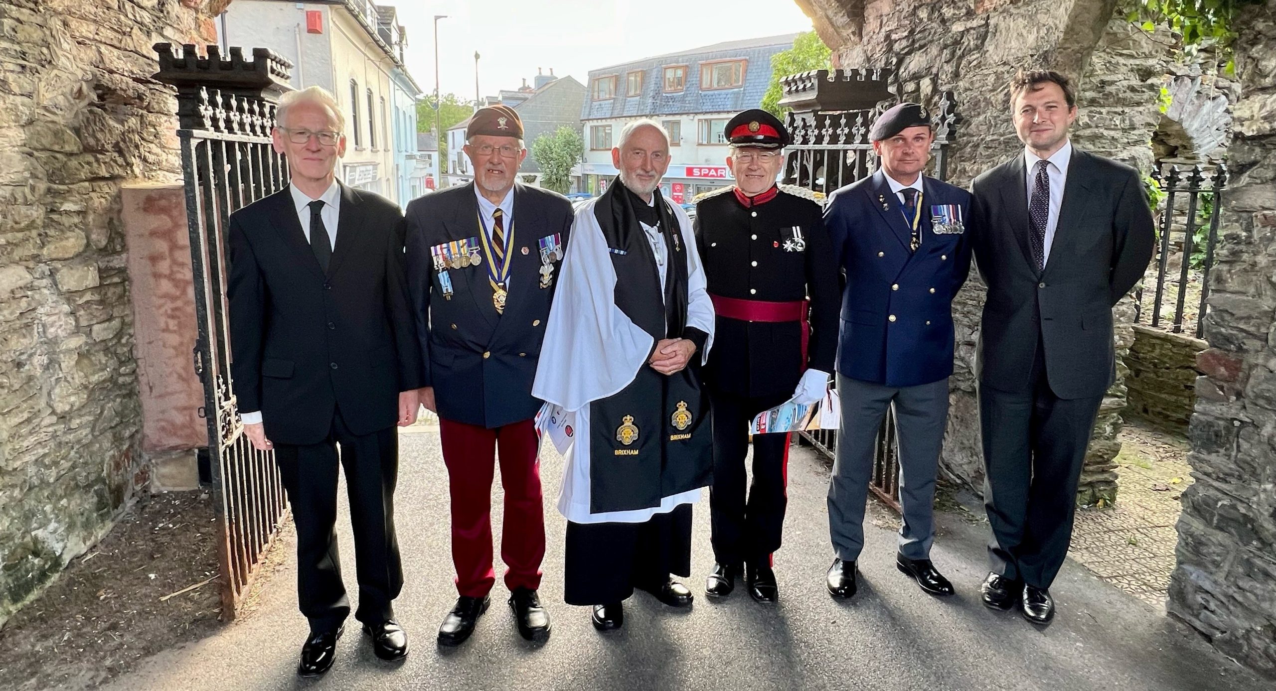 On Sunday 9th June, Deputy Lieutenant Robin Barlow DL attended Brixham’s Commemorative Church Service. Photographed in the photo from left to right is John Brennan (Birxham Future CIC), Jonathan Parr (President Royal British Legion), Martyn Hodge (Chaplin, Royal British Legion), Robin Barlow DL (Deputy Lieutenant of Devon), Gareth Rattler (Chair, Royal British Legion), and Anthony Mangnall.