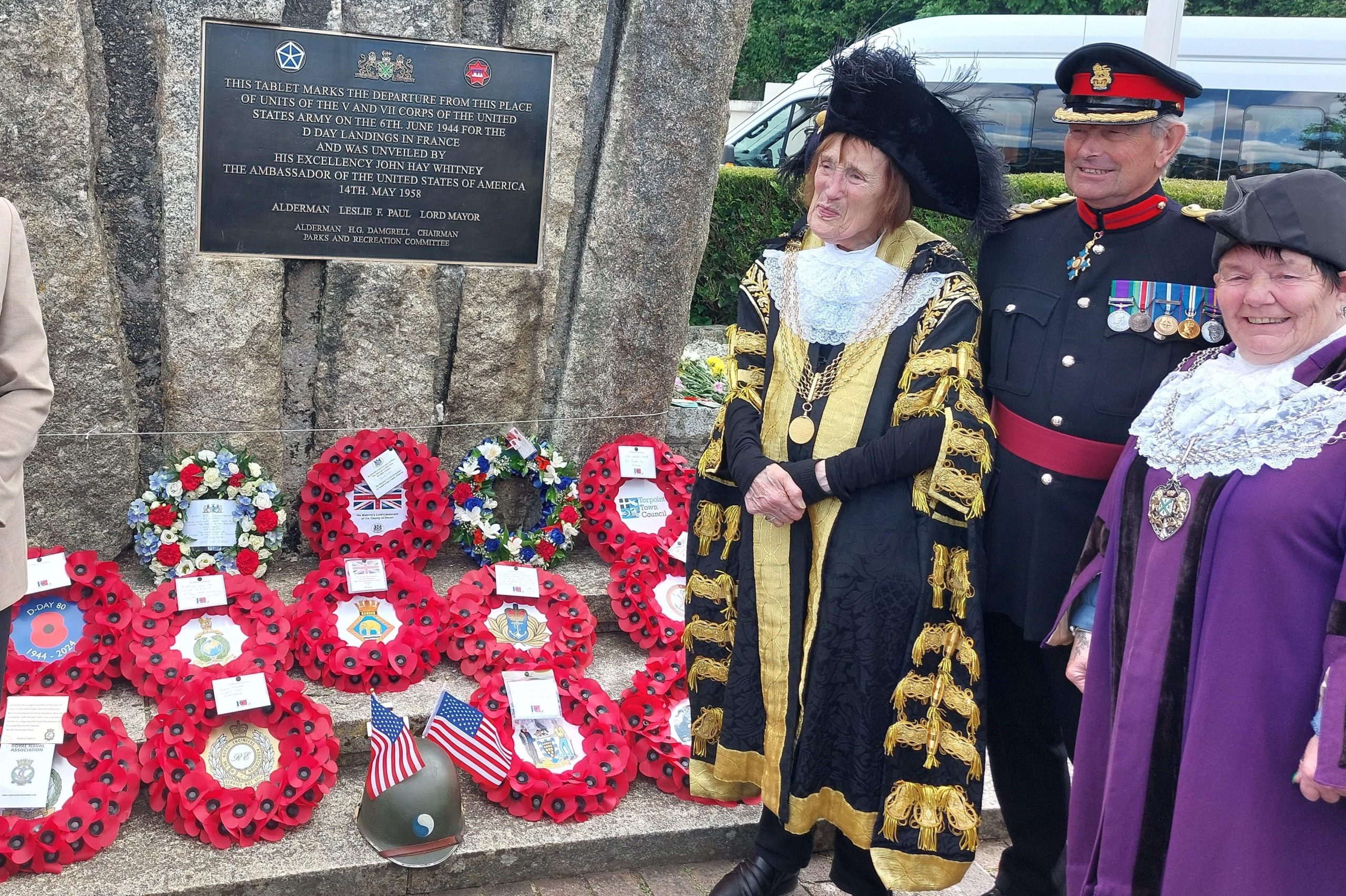 To start the commemorations, Brigadier Simon Young CBE DL (photographed middle) attended Plymouth’s D-Day Service on Thursday 6th June, where he lay a wreath alongside the Lord Mayor of Plymouth, Councillor Tina Tuohy, and the Deputy Lord Mayor, Councillor Pauline Murphy.