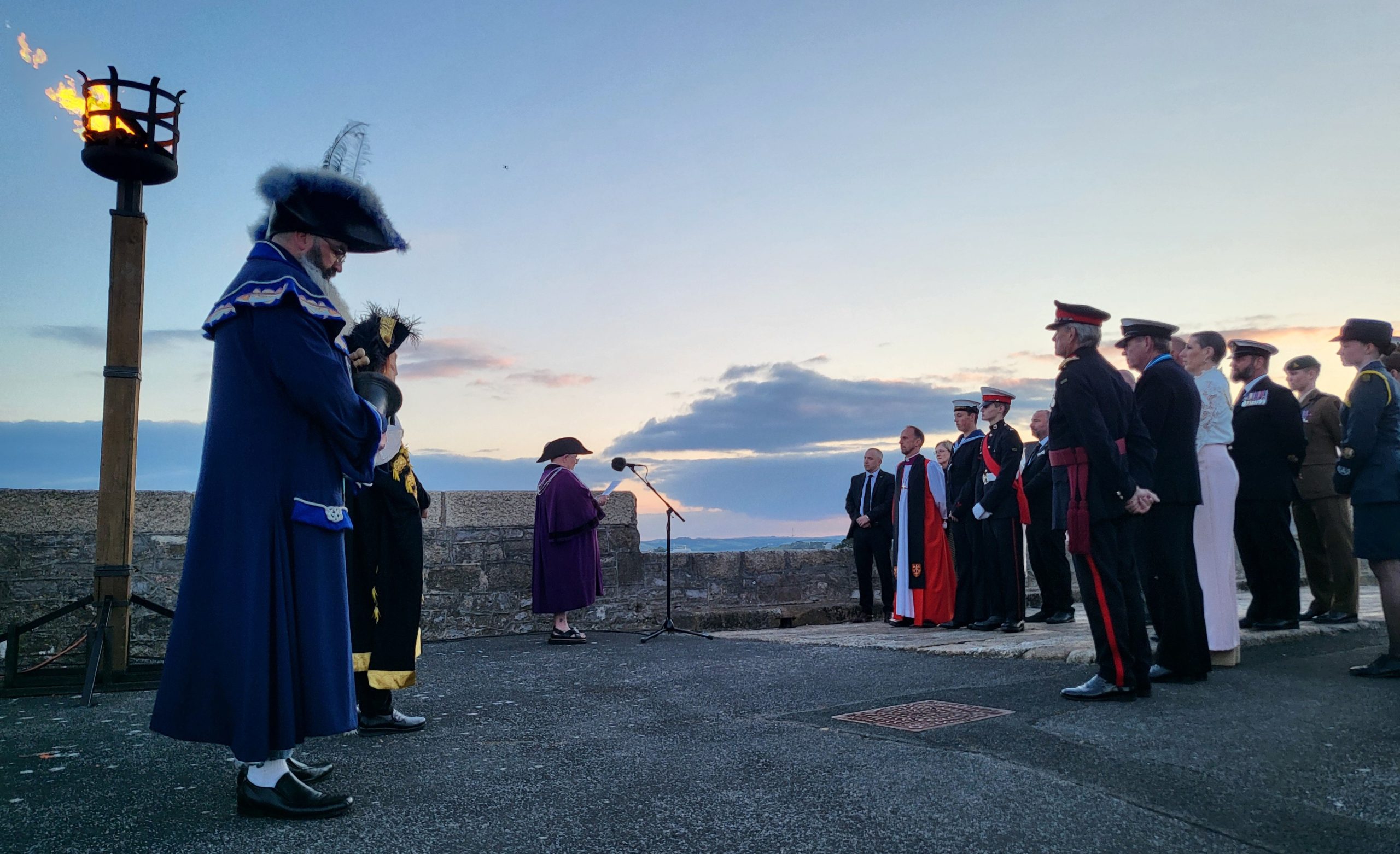 Brigadier Young continued the commemoration services in Plymouth, by attending a Commemorative D-Day Beacon Lighting the same evening. In attendance alongside Brigadier Young was The High Sheriff of Devon, Commodore Jake Moores OBE DL, as well as the Lord Mayor and Deputy Lord Mayor of Plymouth.