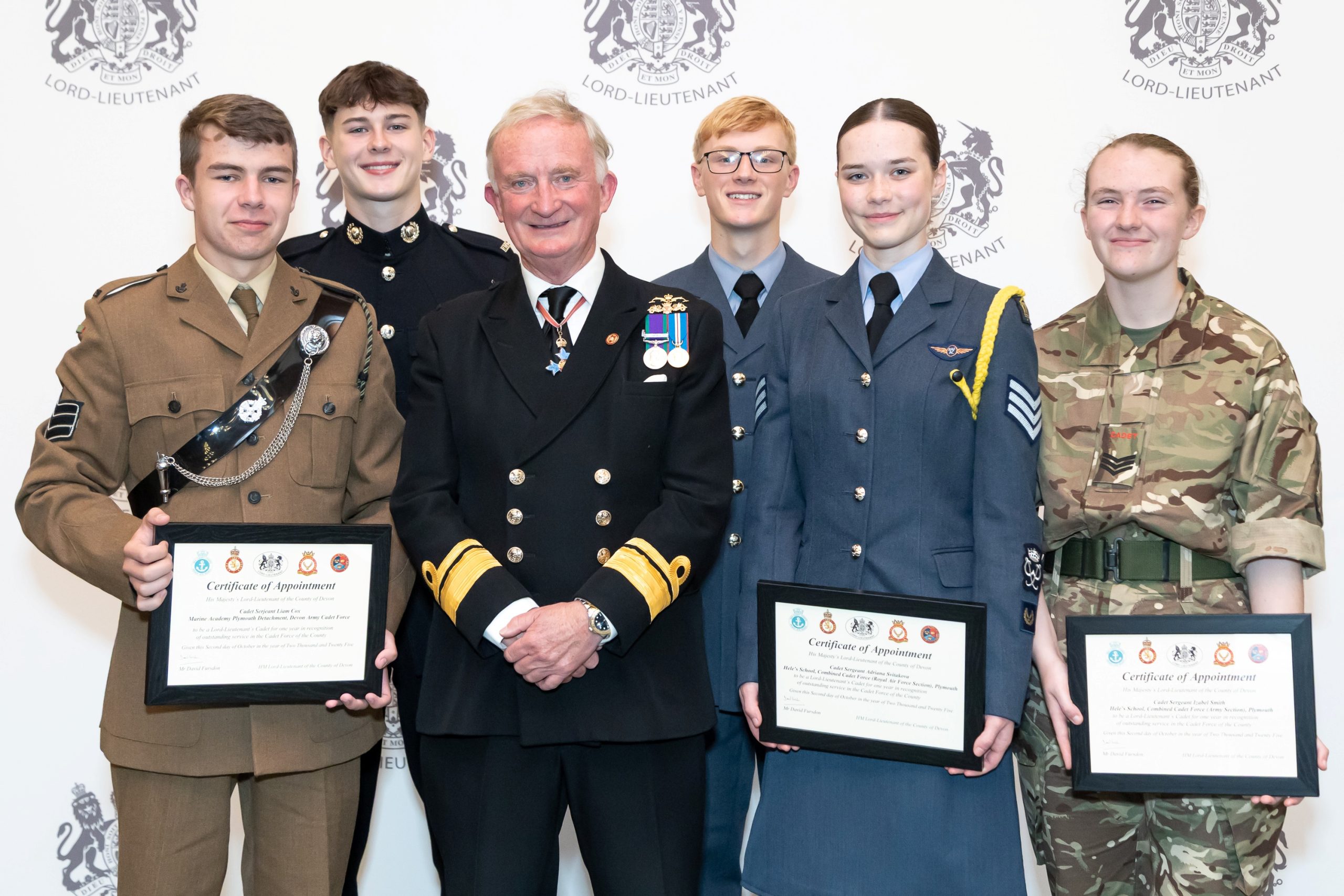 On Thursday 2nd October, the Wessex RFCA Lord Lieutenant Cadet Awards were held at County Hall, Exeter, where five new Lord Lieutenant Cadets were commissioned by His Majesty’s Vice Lord-Lieutenant, Rear Admiral Chris Snow CBE DL. Also in attendance was the Chair of the Council, Councillor Caroline Leaver.