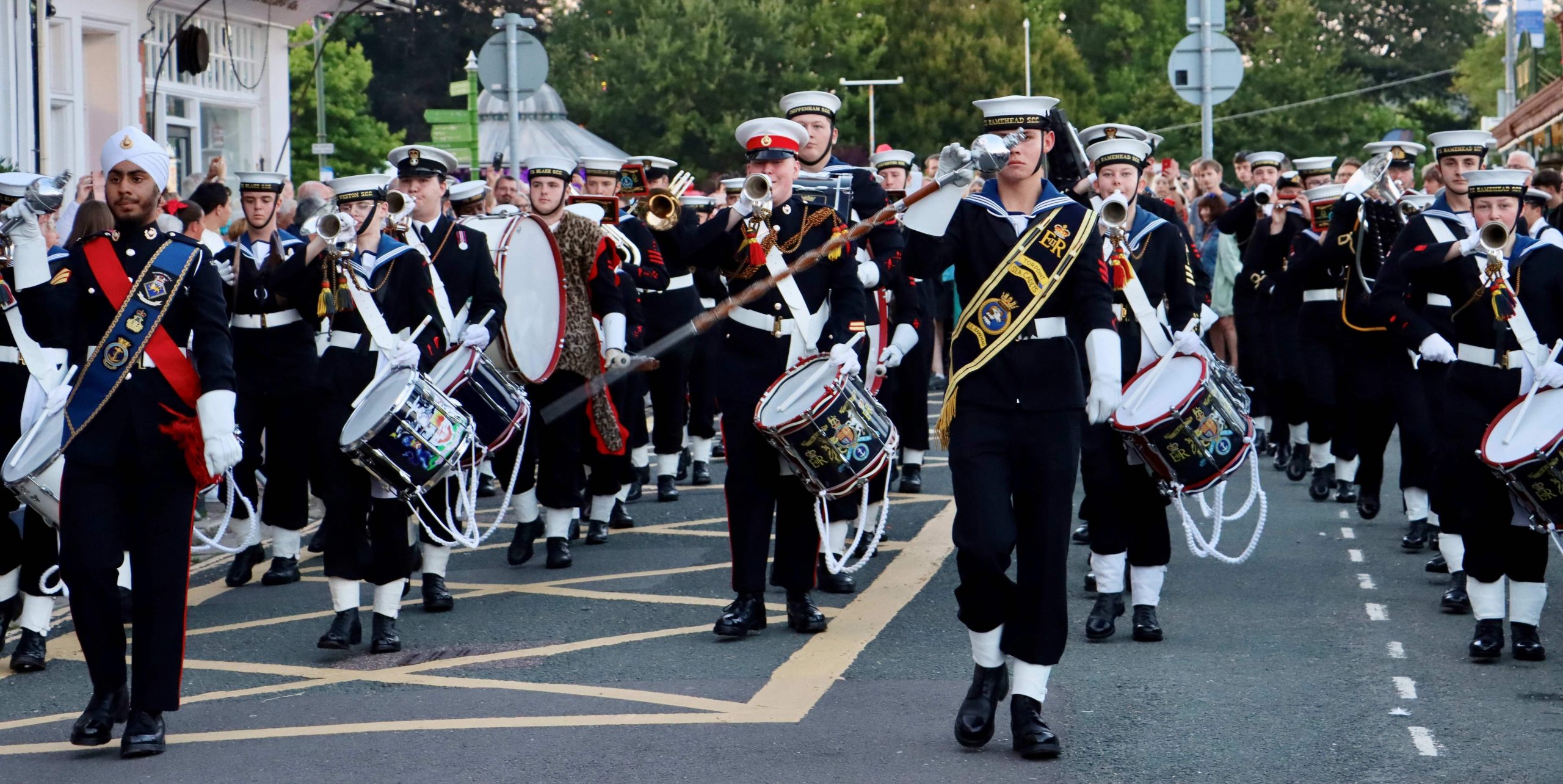 Mr Dowie paraded behind the Combined Band of the SW Area Sea Cadets to the Opening Ceremony on the Bandstand. Following this, Mark then took the salute during the Sunset Ceremony and Beating Retreat by Sea Cadets on the South Embankment.